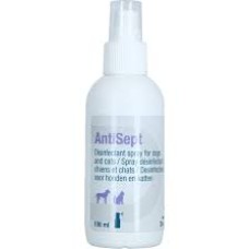 AntiSept desinfectiespray voor honden en katten is een spray te gebruiken bij schrammen, schaaf- en oppervlakkige wonden. Antisept is op basis van Chloorhexidine zodat het wonden, schrammen en schaafwonden kan reinigen en desinfecteren. AntiSept versneld het genezingsproces bij dagelijks gebruik.